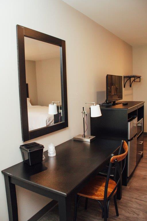 2 comfortable, well-appointed queen rooms featuring a luxurious queen bed, desk, chair, flat screen TV, free wi-fi, microwave, mini-fridge, bathtub and hairdryer located in the